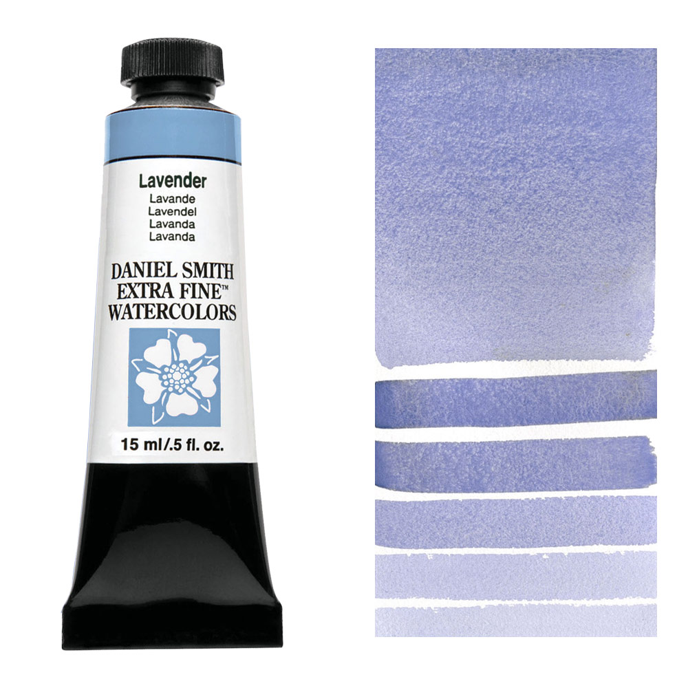DANIEL SMITH Lavender is a beautiful periwinkle blue, and quite different from our other blues. This semi-transparent lavender blue has beautiful granulation, and lifts easily. In addition to being an excellent floral color, DANIEL SMITH's Lavender suggests certain shades of faded denim.