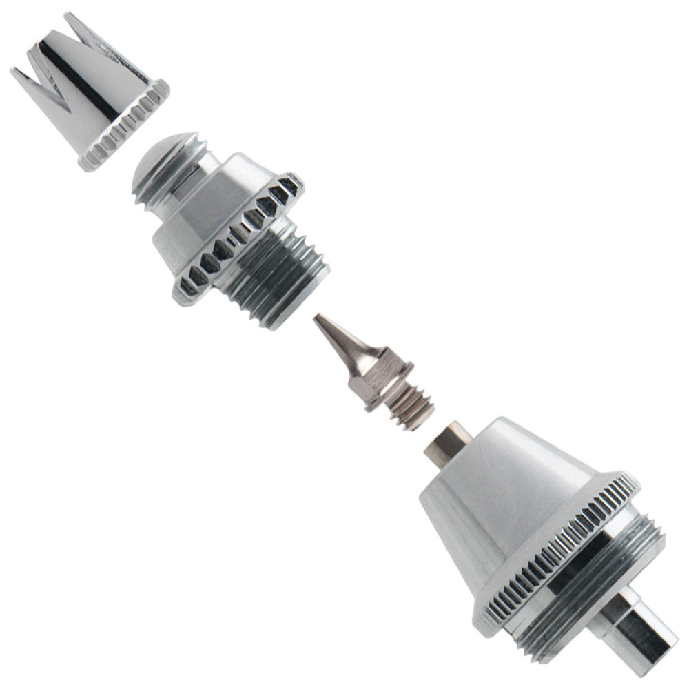 Includes a nozzle base, nozzle, nozzle cap and needle crown cap -- all for the fluid head system.