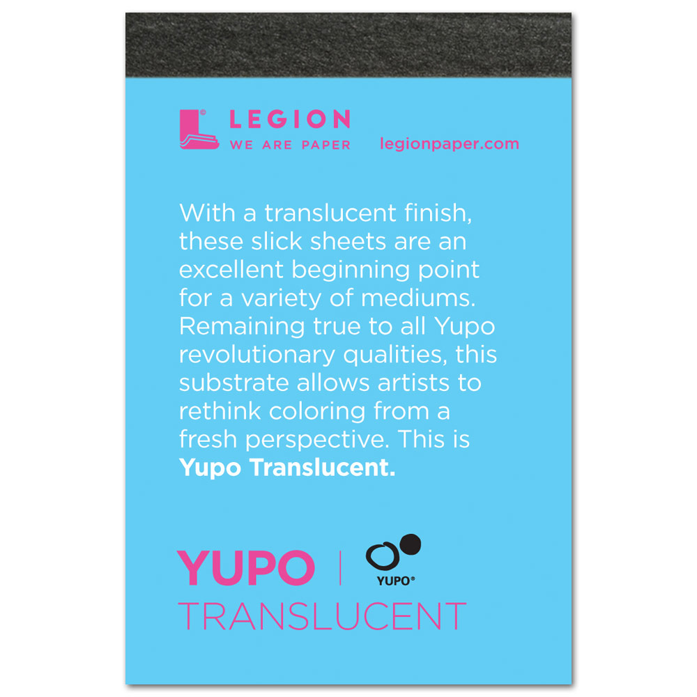With a translucent finish, these slick sheets are an excellent beginning point for variety of mediums. Remaining true to all YUPO revolutionary qualitiyes, this substrate allows artists to rethink coloring from a fresh perspective. This is YUPO Transluscent. This pad features 10 sheets of 2.5" x 3.75" YUPO paper that has a neutral pH and is acid-free. Ideal for acrylic painting, alcohol inks, debossing, monotype, offset, oil pastel, pencil/graphite, silkscreen, Sumi-e ink & watercolor.