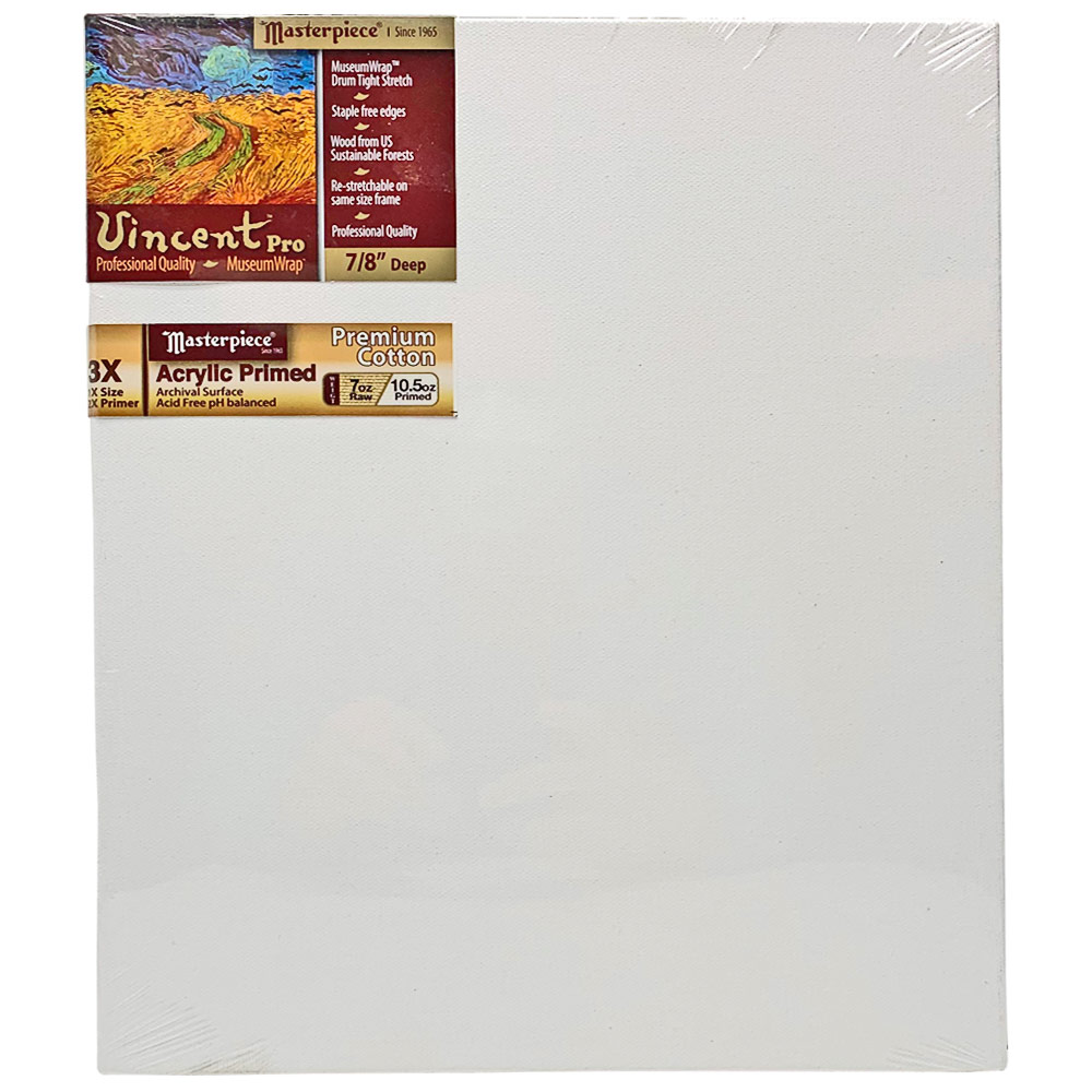 Vincent Pro means a 7/8" deep canvas that is stretched using Masterpiece's MuseumWrap back-stapled method with folded corners. Their proprietary stretching process uses pneumatically controlled machines that Masterpiece built to yield drum-tight tension. Up to 50% tighter than other methods.