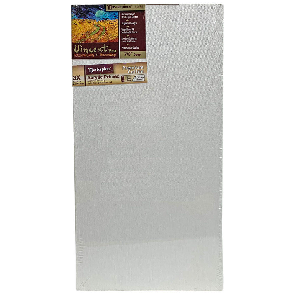 Vincent Pro means a 7/8" deep canvas that is stretched using Masterpiece's MuseumWrap back-stapled method with folded corners. Their proprietary stretching process uses pneumatically controlled machines that Masterpiece built to yield drum-tight tension. Up to 50% tighter than other methods.