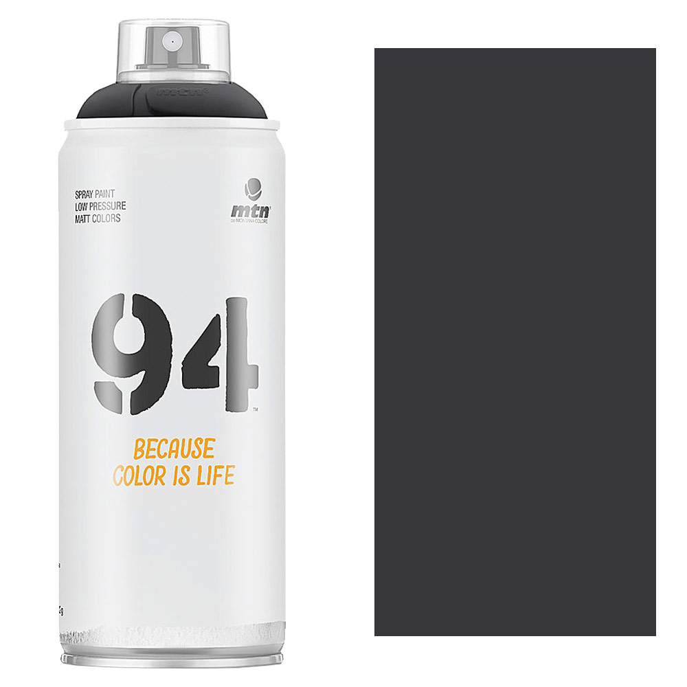MTN 94 Spray Paint - 9RV7016 - Anthracite Grey is a low-pressure matte finish coversall spray paint designed to give artists, craftsmen, and DIY'ers the ultimate control. These versatile spray cans allow graffiti artists to achieve precise finish and effects with ease. Montana Colors MTN 94 9RV7016 - Anthracite Grey is an opaque full very dark grey hue.